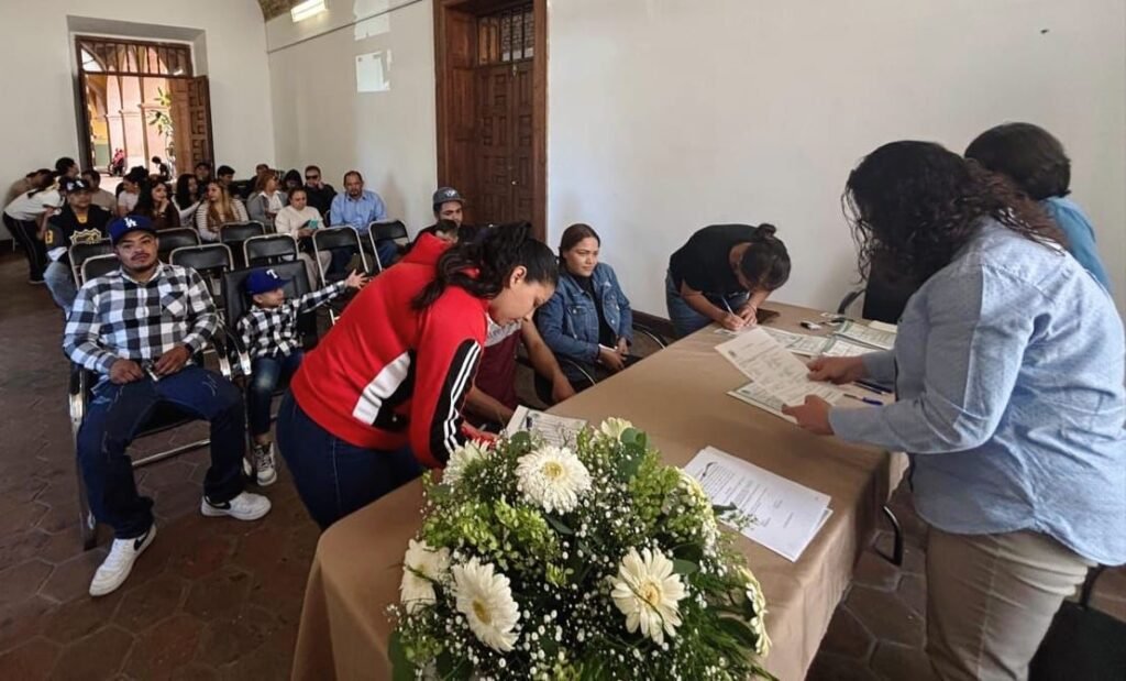 Zacatecas, Zac; 13/02/2026.- El H. Ayuntamiento de Zacatecas, a través del Sistema Municipal DIF, mantiene firme el compromiso de brindar estabilidad legal a las parejas capitalinas mediante el programa de Matrimonios Colectivos 2026, por lo que gracias al apoyo del alcalde Miguel Varela y la presidenta Honorífica del DIF, Karla Estrada, se llevó a cabo la jornada de recopilación de firmas para las actas matrimoniales, teniendo como sede la Casa Municipal de Cultura.